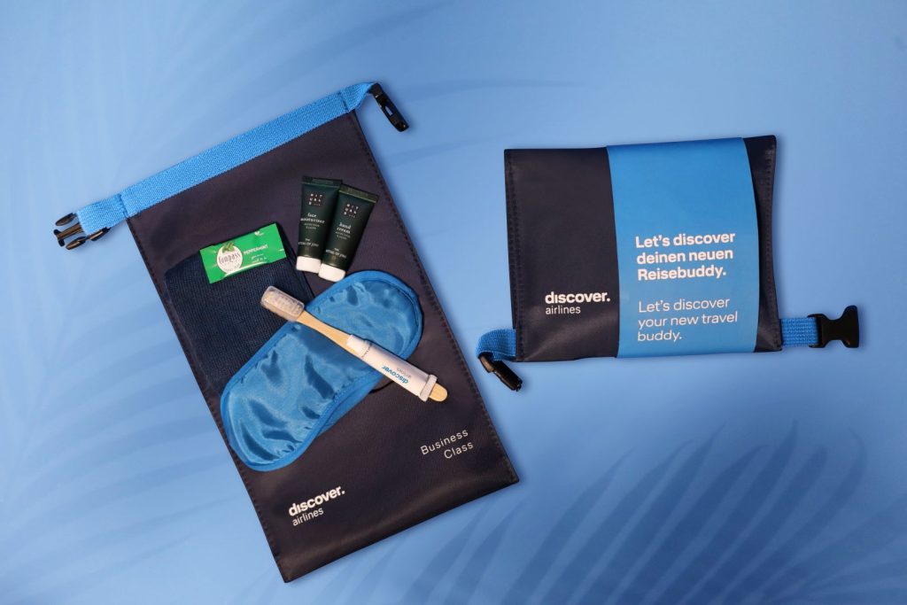 The Discover Airlines Business Class Amenity Kit enhances the passenger experience during the best time of the year. Due to its water-repellent surface, the Drybag shines even after the flight, as you can use it for your valuables, on a hike or at the beach.